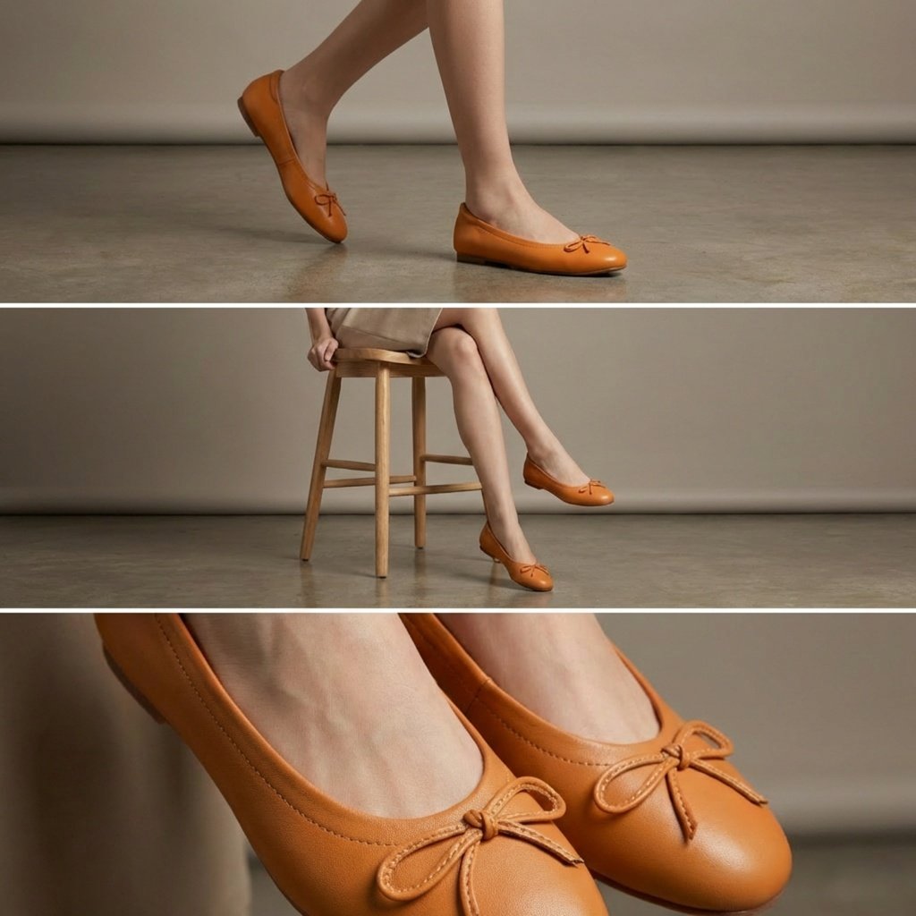 1 inch high. Comfortable shoes. Made from lambskin The insole is made from memory foam. The sole is thick and soft for you to wear comfortably all day long.