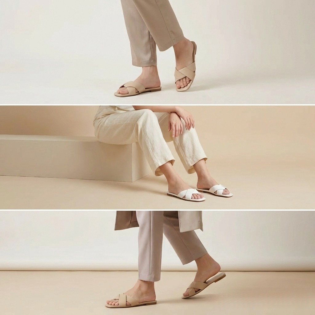 slip-on sandals There is a knot detail on the front. Material made from special synthetic leather. Wide forefoot shape, comfortable to wear.