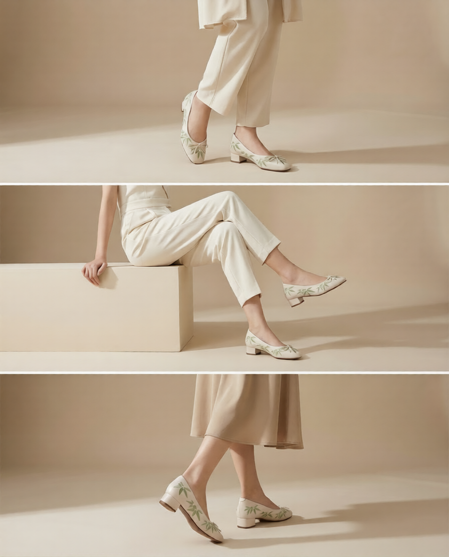 Elegant loafers crafted from premium lambskin leather, delicately embroidered with intricate leaf patterns for a refined yet eye-catching look. Designed with a soft cushioned insole for all-day comfort, making them perfect for both workdays and casual outings. Effortlessly pairs with office attire or laid-back ensembles.